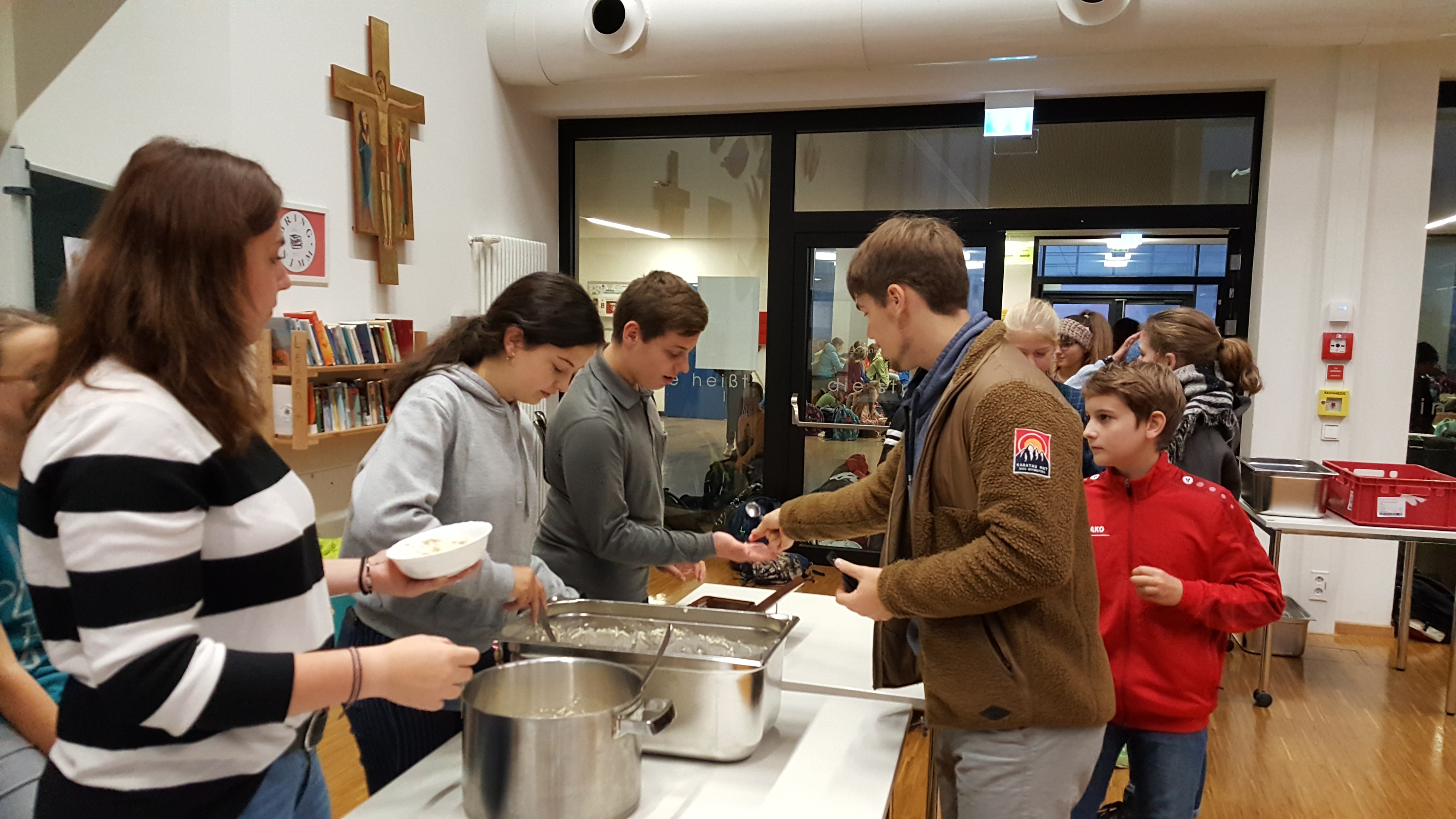 Auch der zweite Müsli-Morning des Arbeitskreises Eine Welt im Arthur-Groß-Saal war wieder ein voller Erfolg. Er fand am 22.10.2019 statt. Es kamen viele Schüler , die das gesunde, leckere und preiswerte Frühstück genossen. Für nur einen Euro gab es eine große Schüssel Müsli (Rezept siehe unten) und man durfte sich aus über zehn verschiedenen Toppings zwei aussuchen. Das Tolle an diesem Müsli ist, dass es komplett mit fairen Zutaten hergestellt wurde. Schüler von der fünften bis zur 12. Klasse und viele Lehrkräfte waren von dem Angebot begeistert: Fast 100 Portionen Müsli waren im Nu verkauft!