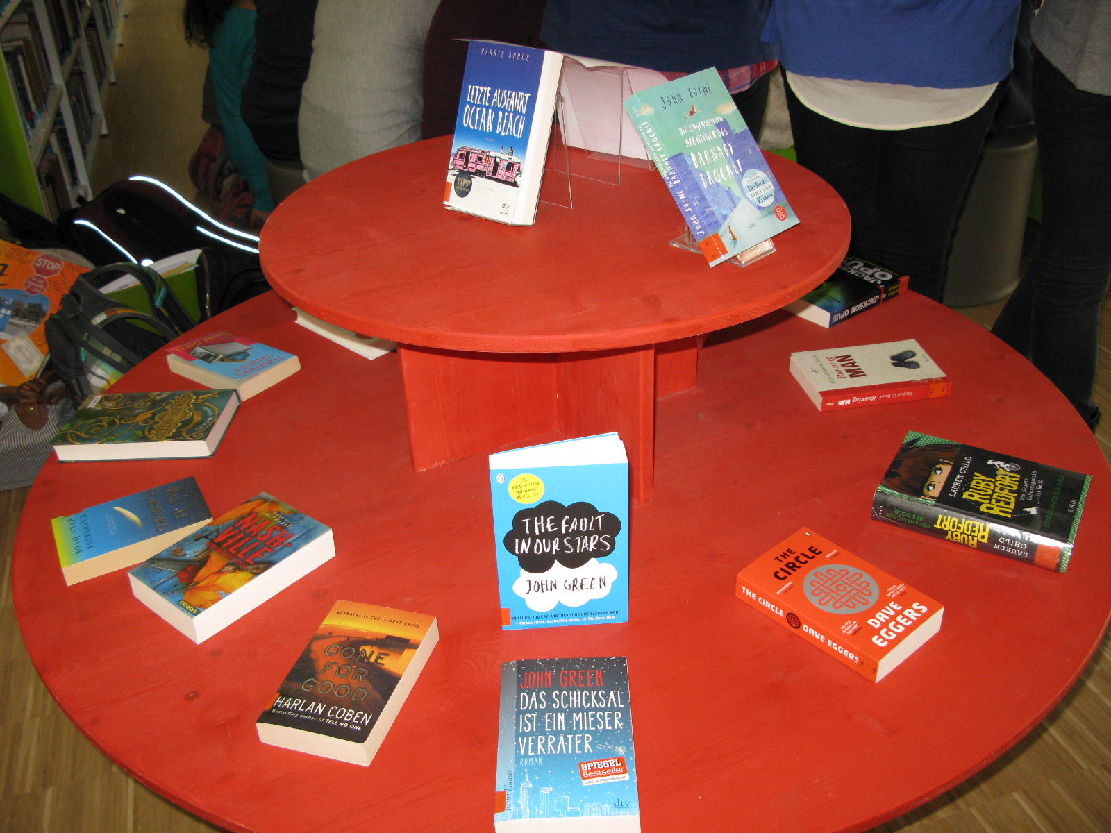 Was haben wir erreicht? Wir haben dank großzügiger Spender, denen wir hier noch einmal herzlich danken, viele neue Jugendbücher für unsere Schulbibliothek angeschafft, Bücherquizzes zu vorgestellten Büchern als Anreiz zur Ausleihe und zum Lesen erstellt. Fleißige Leser/innen wurden durch schöne Preise belohnt. Unsere Schule ist nun auf der Homepage des Leseforums Bayern (Bücher des Monats Mai 2016 und unter der Rubrik „Gute Praxis“) zu finden und für die fünften Klassen haben wir Büchereirallyes zum besseren Zurechtfinden in der Schulbibliothek durchgeführt. Für Vertretungsstunden in den 7. und 8. Klassen gibt es jetzt eine Bücherkiste, bestückt mit Büchern, die in Umfragen von euch gewünscht wurden. Und es gibt ein „Nimm eins & Bring eins“-Regal in der Aula, das ebenfalls Lust aufs Schmökern machen soll.