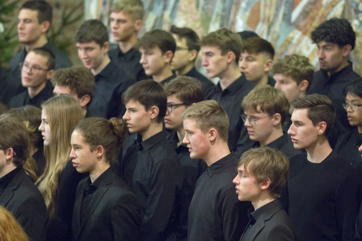Drei Jahre ist es her, dass zuletzt unser traditionelles Weihnachtskonzert stattfinden konnte. Umso schöner ist es, dass es nun endlich wieder möglich war, sich gemeinsam als Schulgemeinschaft musikalisch auf das Weihnachtsfest einzustimmen, denn gerade dieses Konzert ist mit besonderen Emotionen verbunden. Die neuen Schülerinnen und Schüler des Unterstufenchors und des Nachwuchsorchesters erlebten in ihren Ensembles ihren ersten großen Auftritt. Bei vielen anderen Mitgliedern der musikalischen Ensembles stellte das Weihnachtskonzert den ersten musikalischen Höhepunkt des Schuljahres dar. Zu hören waren u. a. feierliche und bewegende Werke von František Xaver Brixi, Karl Kempter und Camille Camille Saint-Saëns sowie viele bekannte weihnachtliche Weisen, die das Herz erwärmten und auf das Weihnachtsfest einstimmten.