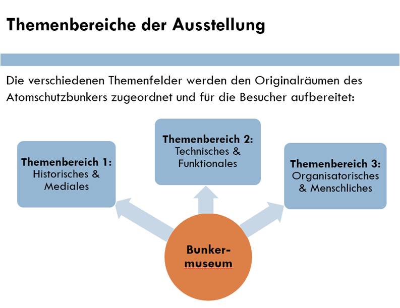 Um den Marktoberdorfer Bunker - eine sogenannte Mehrzweckanlage (MZA) in seiner Funktionalität zu erläutern und einzuordnen, ergeben sich folgende Themenfelder, mit denen sich die Ausstellung schwerpunktmäßig befasst:
