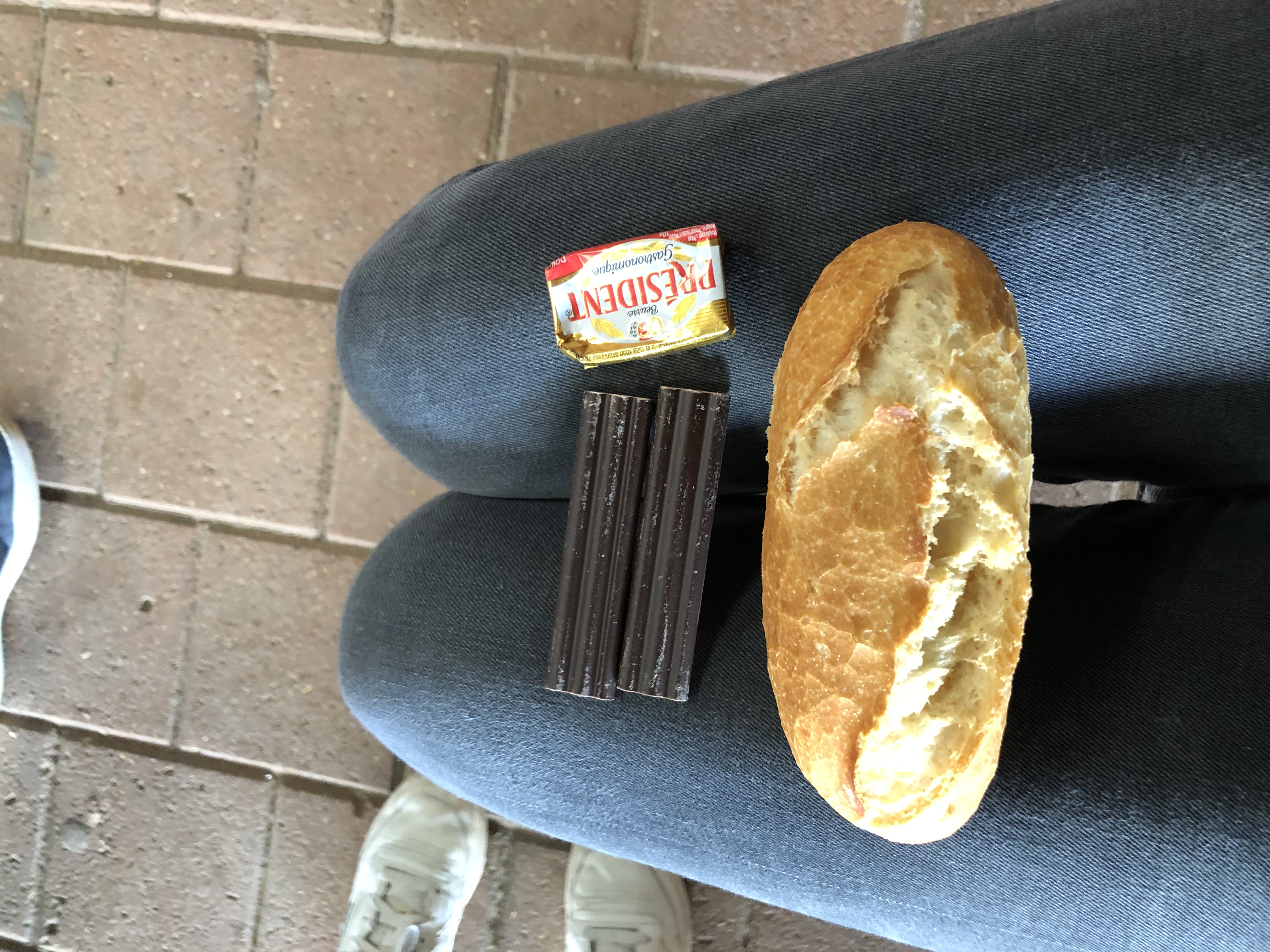 9.00 Uhr Frühstück 1x Brötchen, 1x Stück Butter, 2x Schokoladenstücke, 1x Tasse Kaba oder Tee
