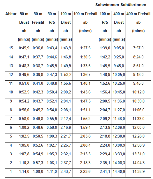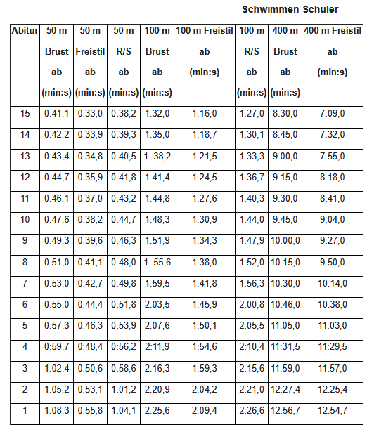 Im Leistungsfach Sport mit besonderer Fachprüfung ergibt sich die Halbjahresleistung aus dem Durchschnitt der Punktzahl im Fach Sport und der Punktzahl in der „Sporttheorie“.