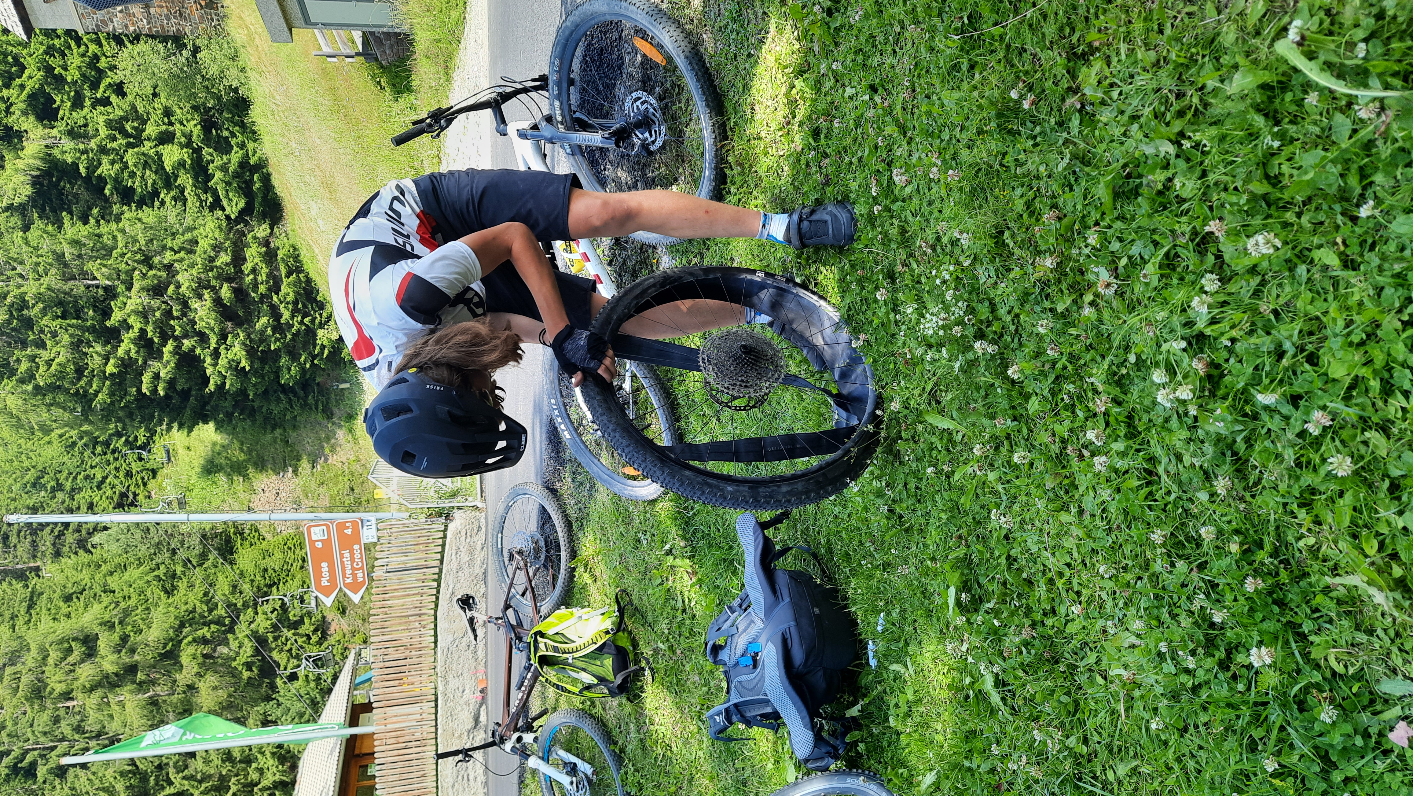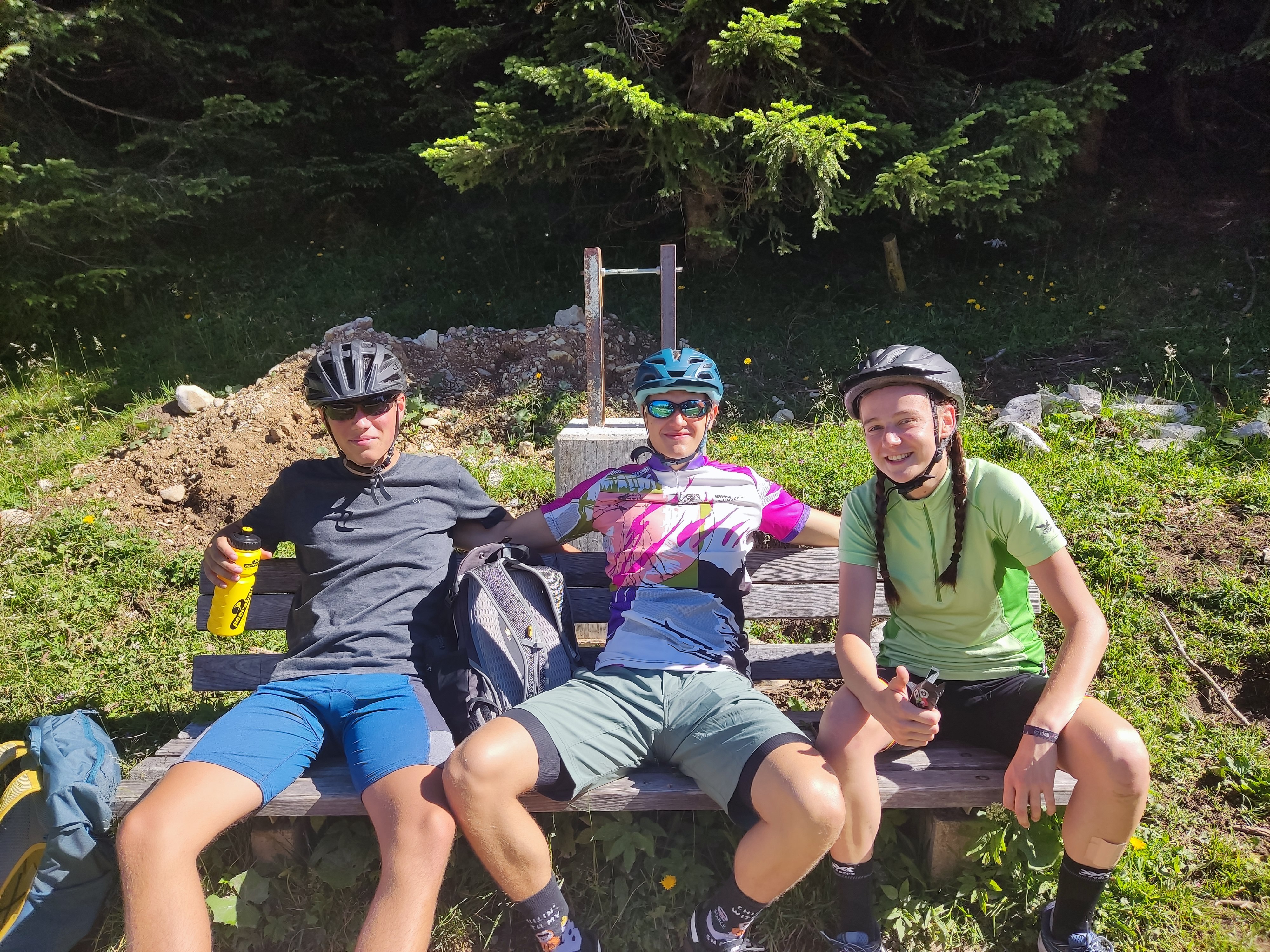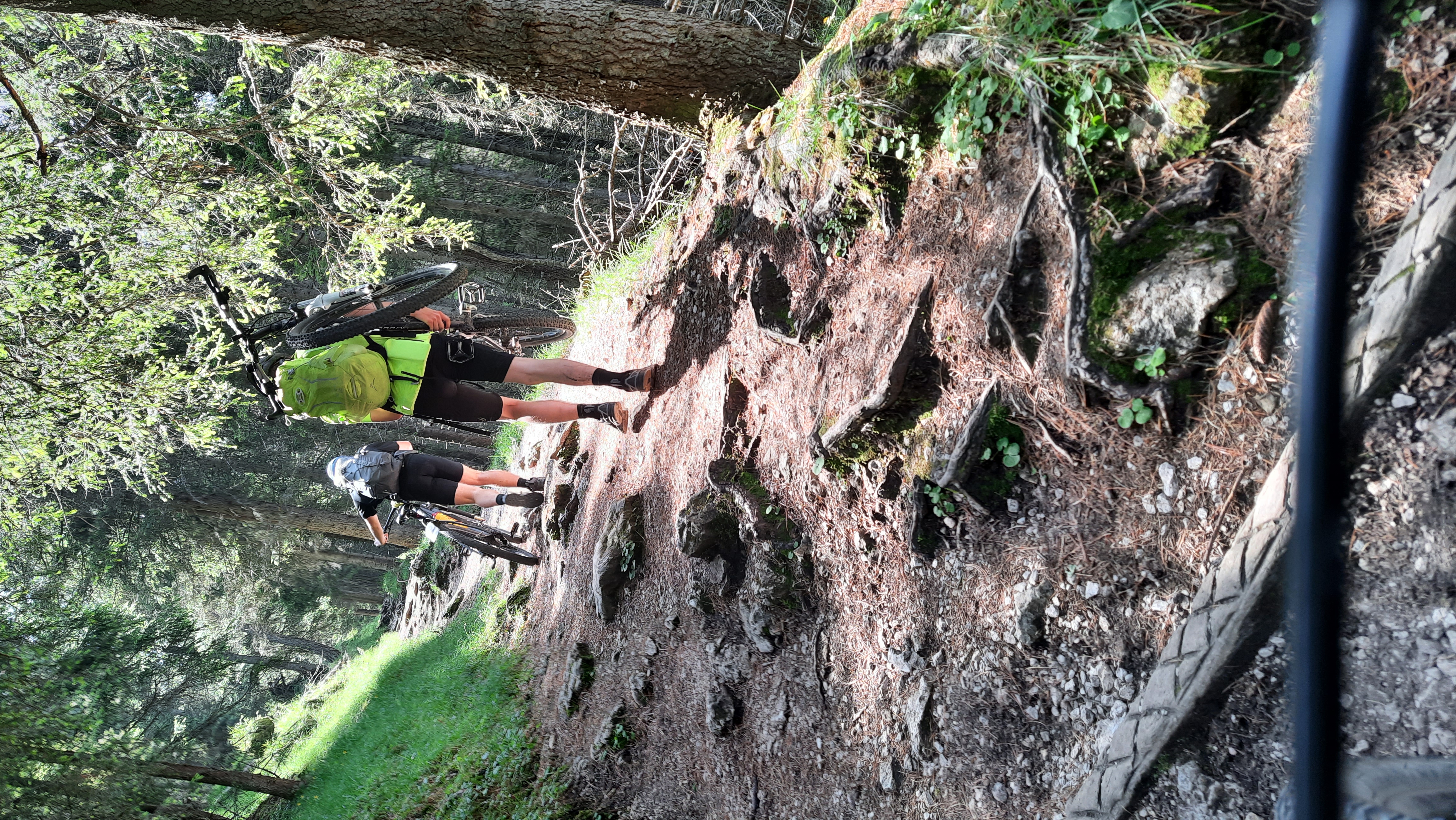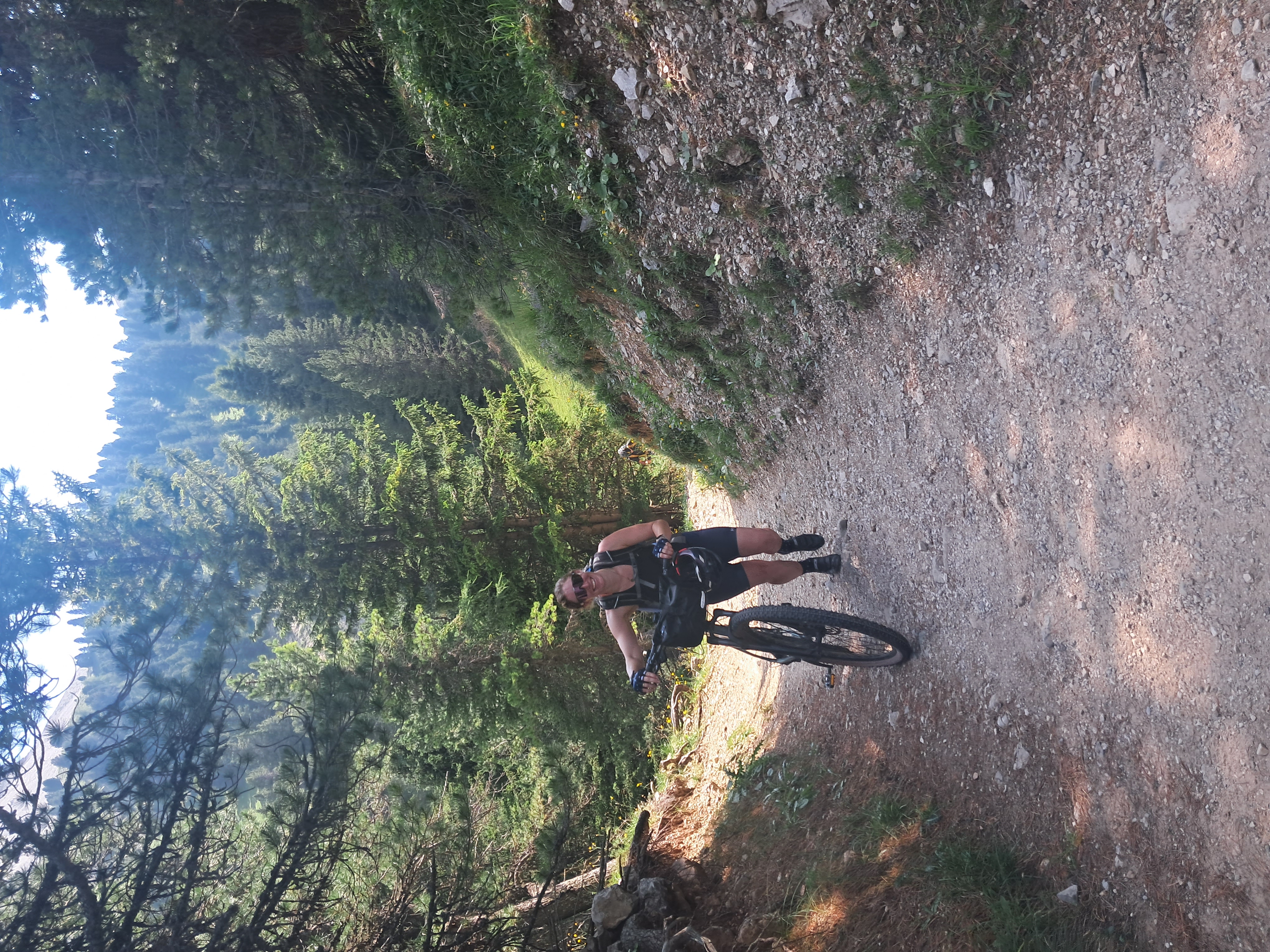 Tag 3: Es war der einzige Tag, an dem wir abends einen „Termin“ hatten, nämlich die letzte Seilbahn um 18:00 Uhr. Doch waren sich alle einig, dass dies kein Problem werden dürfte. Doch es wurde eins… Direckt zu Beginn geht es steil in Serpentinen bergauf zur ersten Seilbahn. Diese können wir auch locker erreichen. Von oben geht es dann durch den Bikepark bergab. Genau das wird uns aber zum Verhängnis, denn hier gab es den ersten Platten, der trotz Schlauchwechsel kurz darauf nochmal auftritt. Hier verlieren wir wertvolle Stunden und zusammen mit einigen Problemen beim Navigieren und unwegsamen Gelände, führt dies dazu, dass ein Teil der Gruppe die zweite Seilbahn nicht bekommt und deshalb zusätzlich einige Höhenmeter mit dem Rad zurücklegen muss.