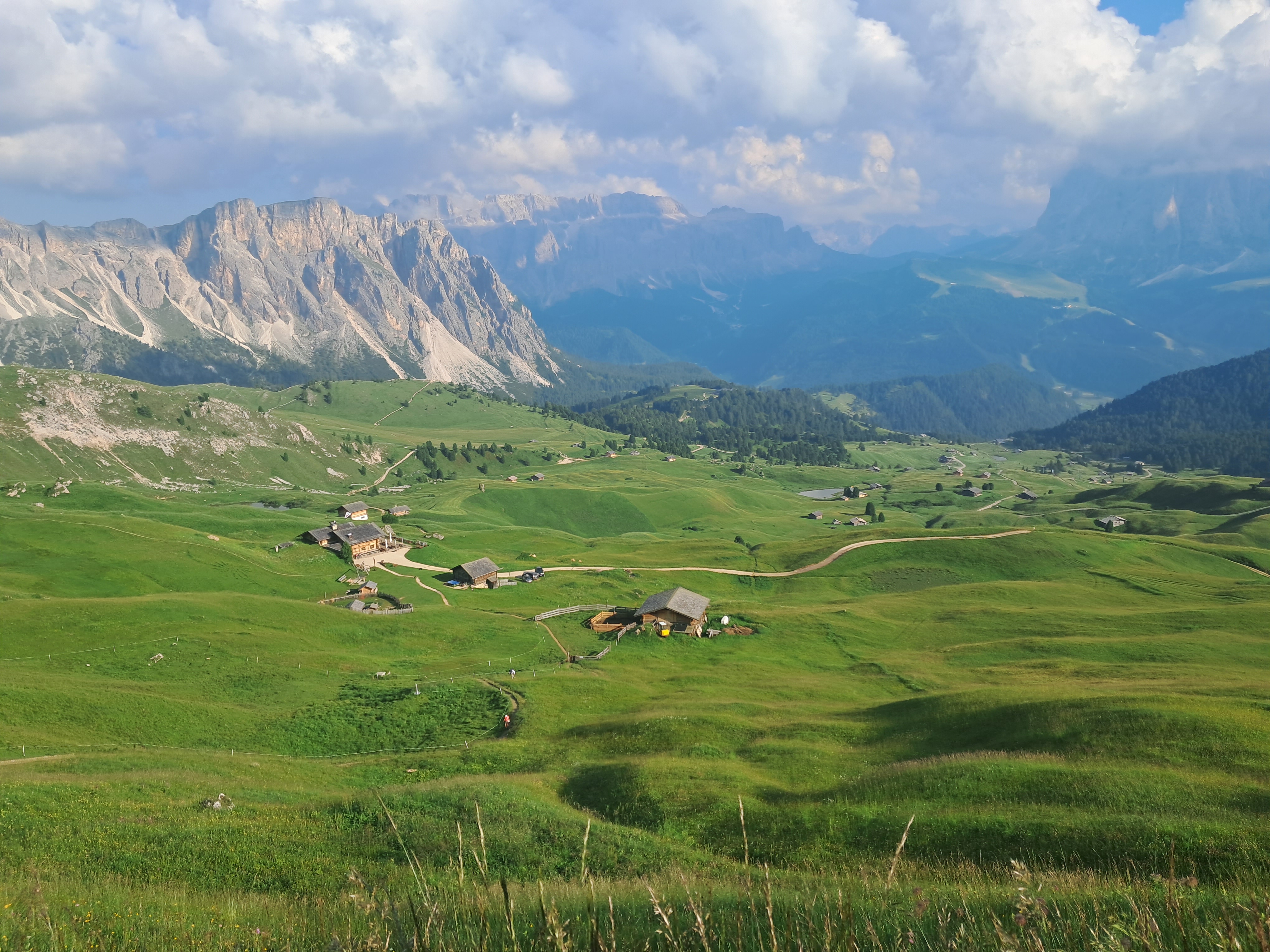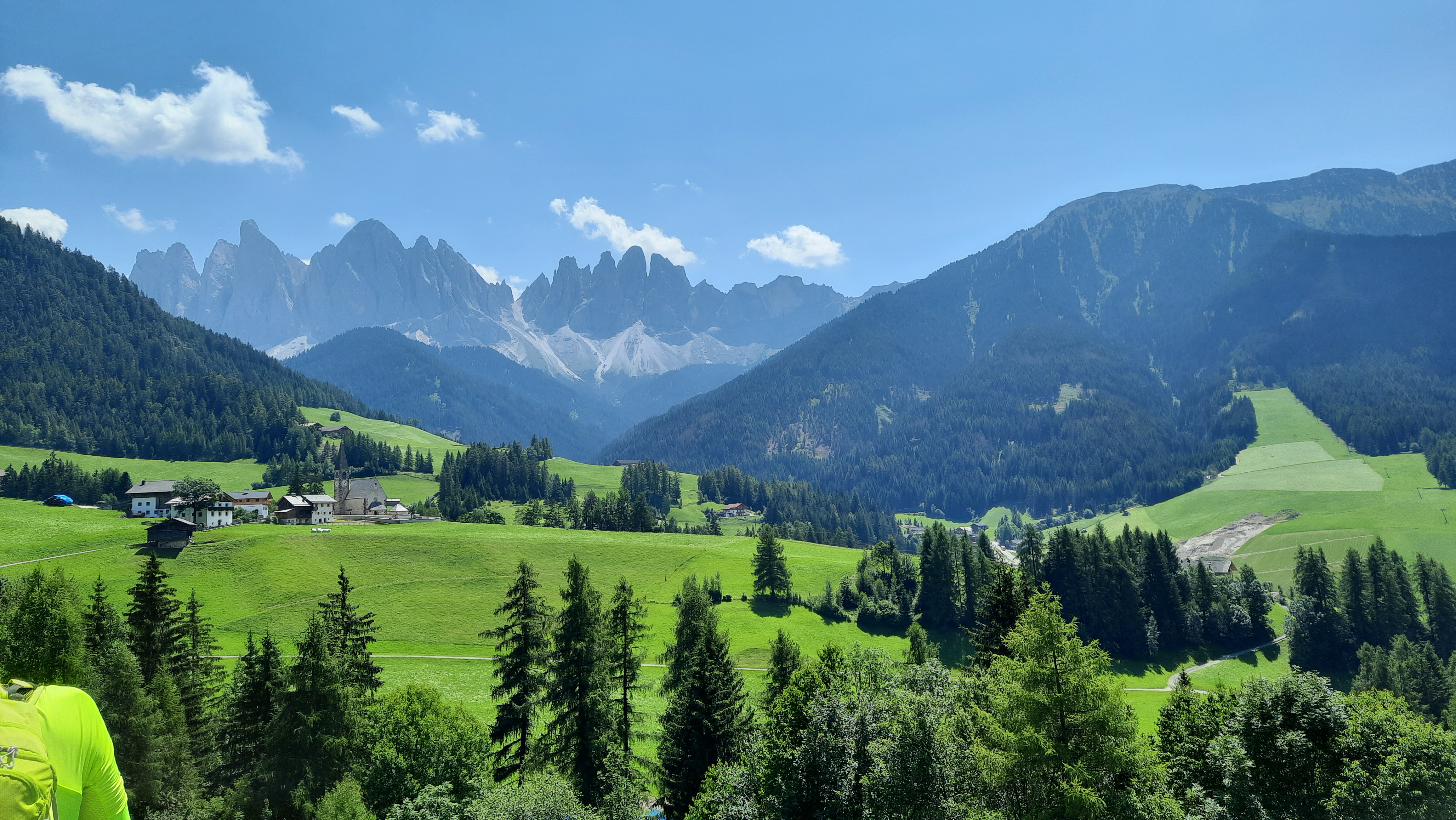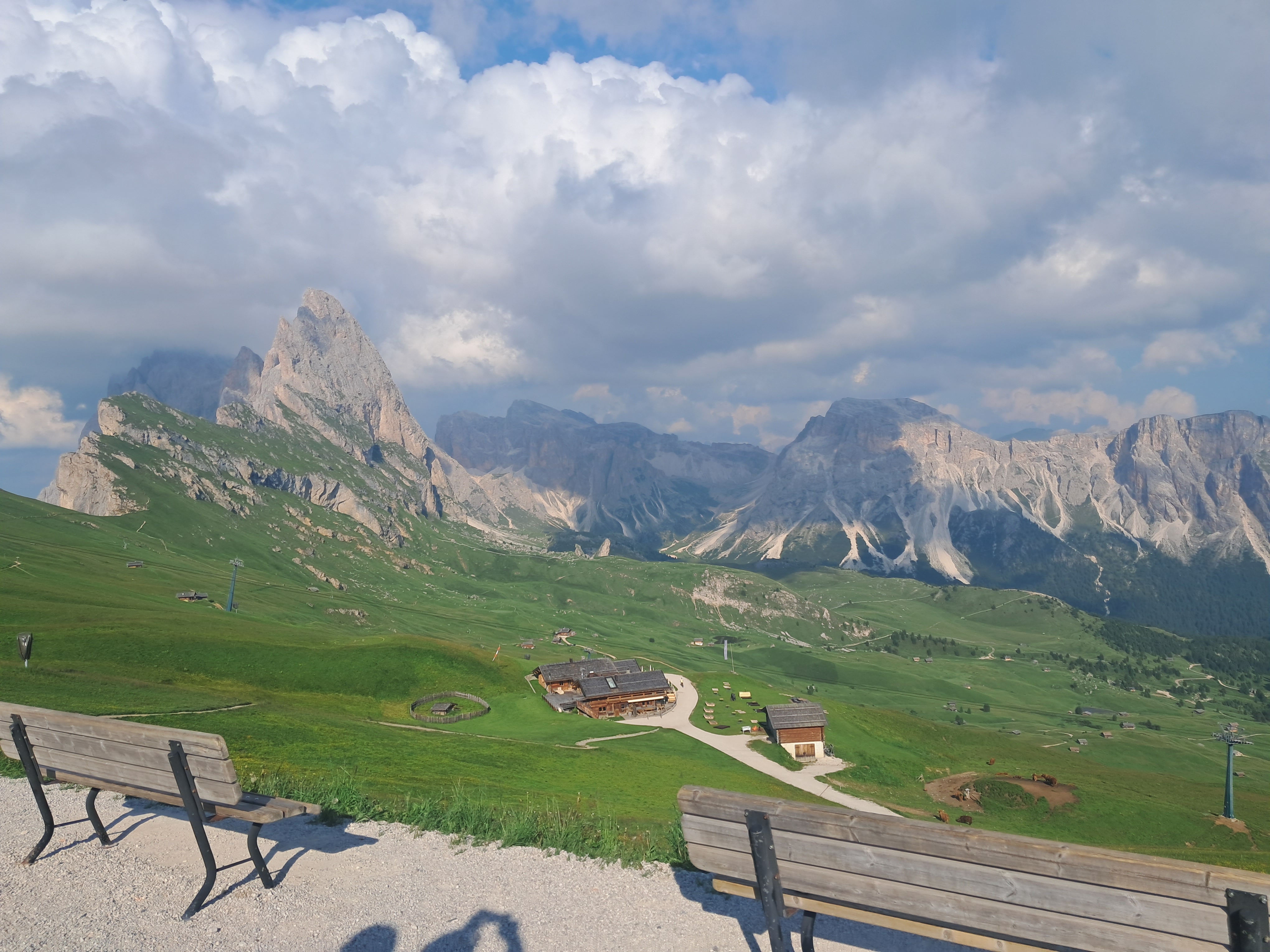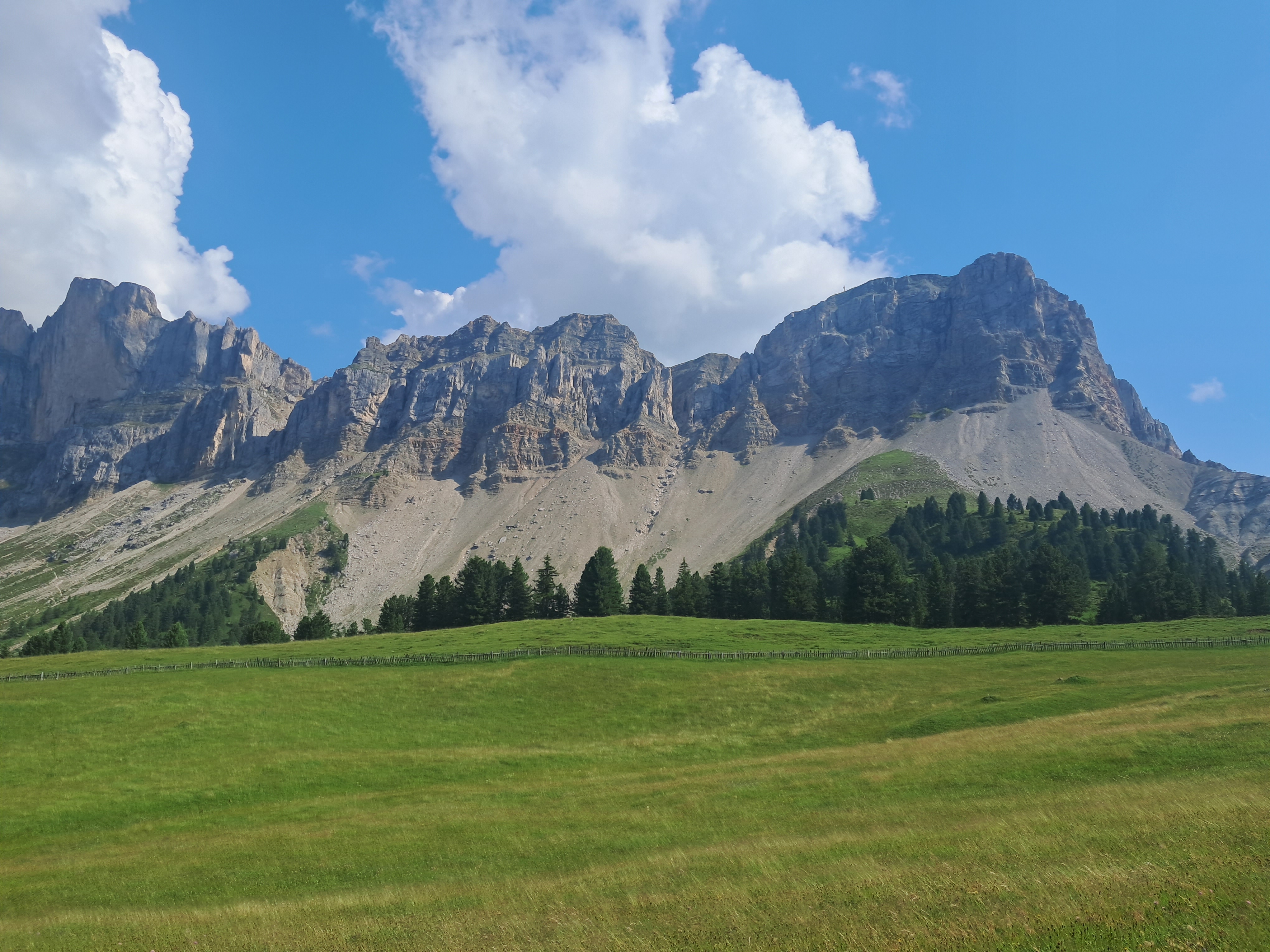 Tag 4: Wir wachen auf der Regensburger Hütte durch die ersten Sonnenstrahlen auf und können direkt als erstes das Panorama auf 2000 m Seehöhe genießen. Nach dem Frühstück besprechen wir dann noch kurz, was an Tag 3 schiefgelaufen ist, und machen uns anschließend auf den Weg talwärts Richtung Bozen. Auch, wenn es einige Anstiege unterwegs gibt, zeigt die Tendenz doch ganz klar nach "unten" und wir kommen zeitig ca. 1700m tiefer als wir gestartet sind in Bozen an. Als wir auf dem Weg zum Begleitfahrzeug sind, um das Gepäck zu holen, werden wir von einem kräftigen Sommergewitter überrascht und kräftig nass. Trotzdem raffen wir uns wieder zusammen und kochen noch gemeinsam.