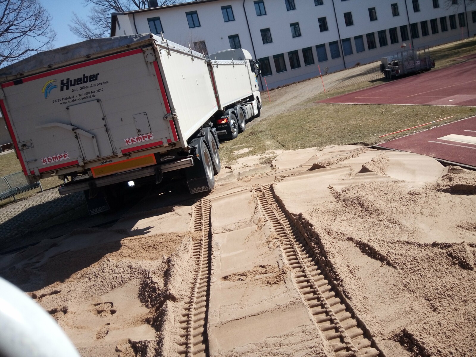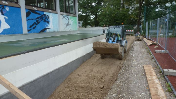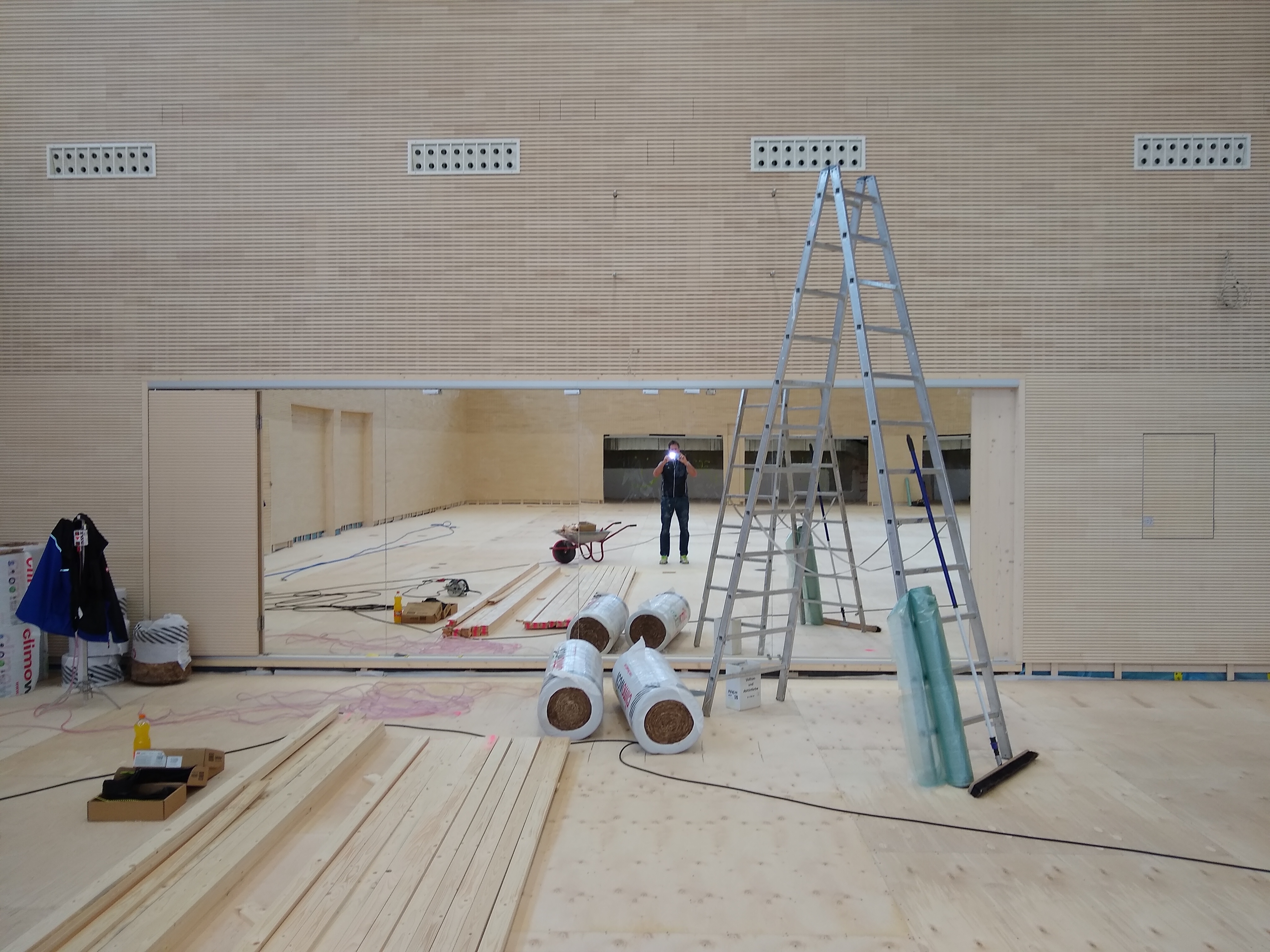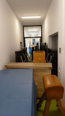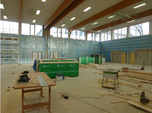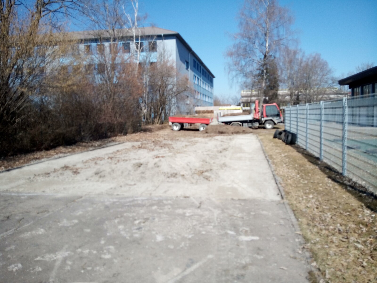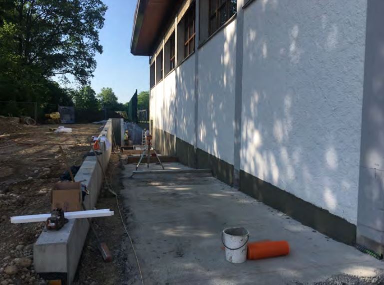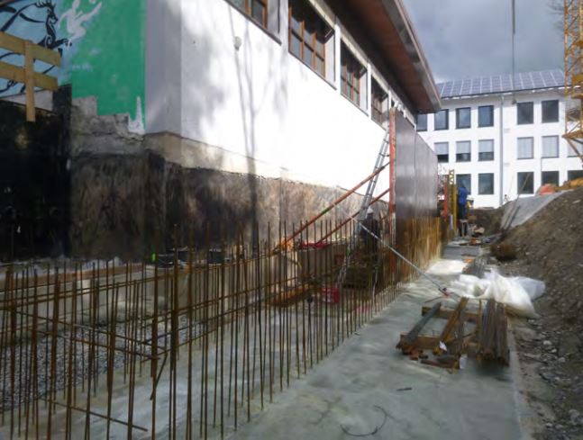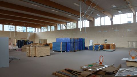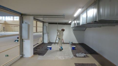 Nach intensiver Planungszeit mit zahlreichen Sitzungen im staatlichen Bauamt Kempten wurde ab März 2018 mit den ersten Arbeiten begonnen. Zu Beginn wurden alle Sportgeräte in den auf dem Pausenhof West aufgestellten Containern eingelagert. Auch der Mehrstationenturm des Kraftraums wurde von der Fachschaft Sport in mühevoller Kleinarbeit zerlegt und eingemottet. Alle Sportgeräte, die während der Bauphase für den "alternativen" Sportunterricht benötigten wurden fanden im Atriumsgebäude des Gymnasiums im Keller U-042 einen Platz. Während der gesamten Bauzeit fand der Sportunterricht, sommers wie winters, überwiegend im Freien statt. Lediglich in einigen wenigen freien Zeitfenstern konnte der Sportunterricht in der Stadionhalle, der MS-Halle oder der Berufsschulhalle stattfinden. Wir danken an dieser Stelle der RS Mod, der MS Mod sowie der Berufschule Mod für die gute Zusammenarbeit!