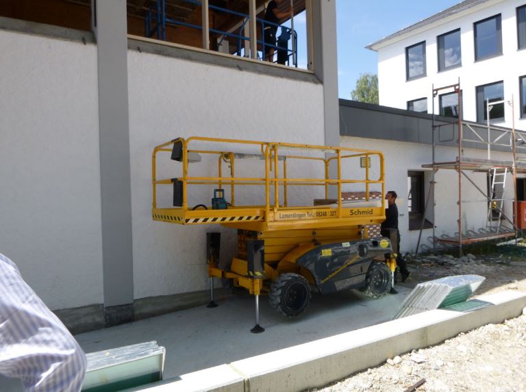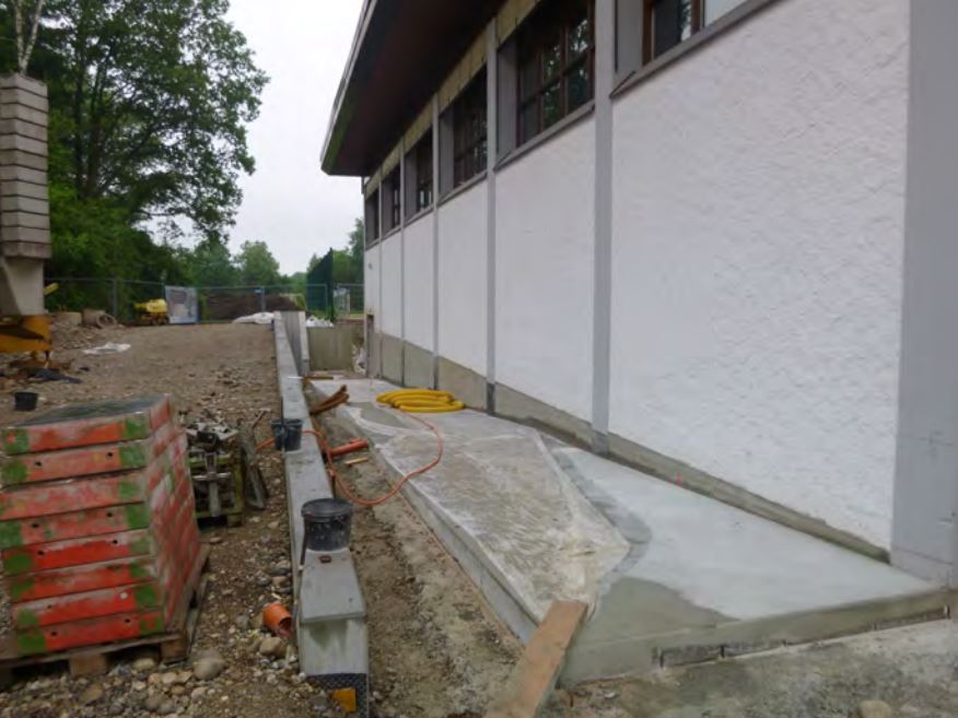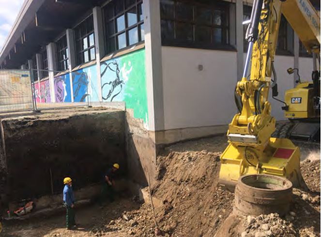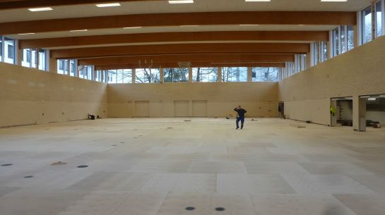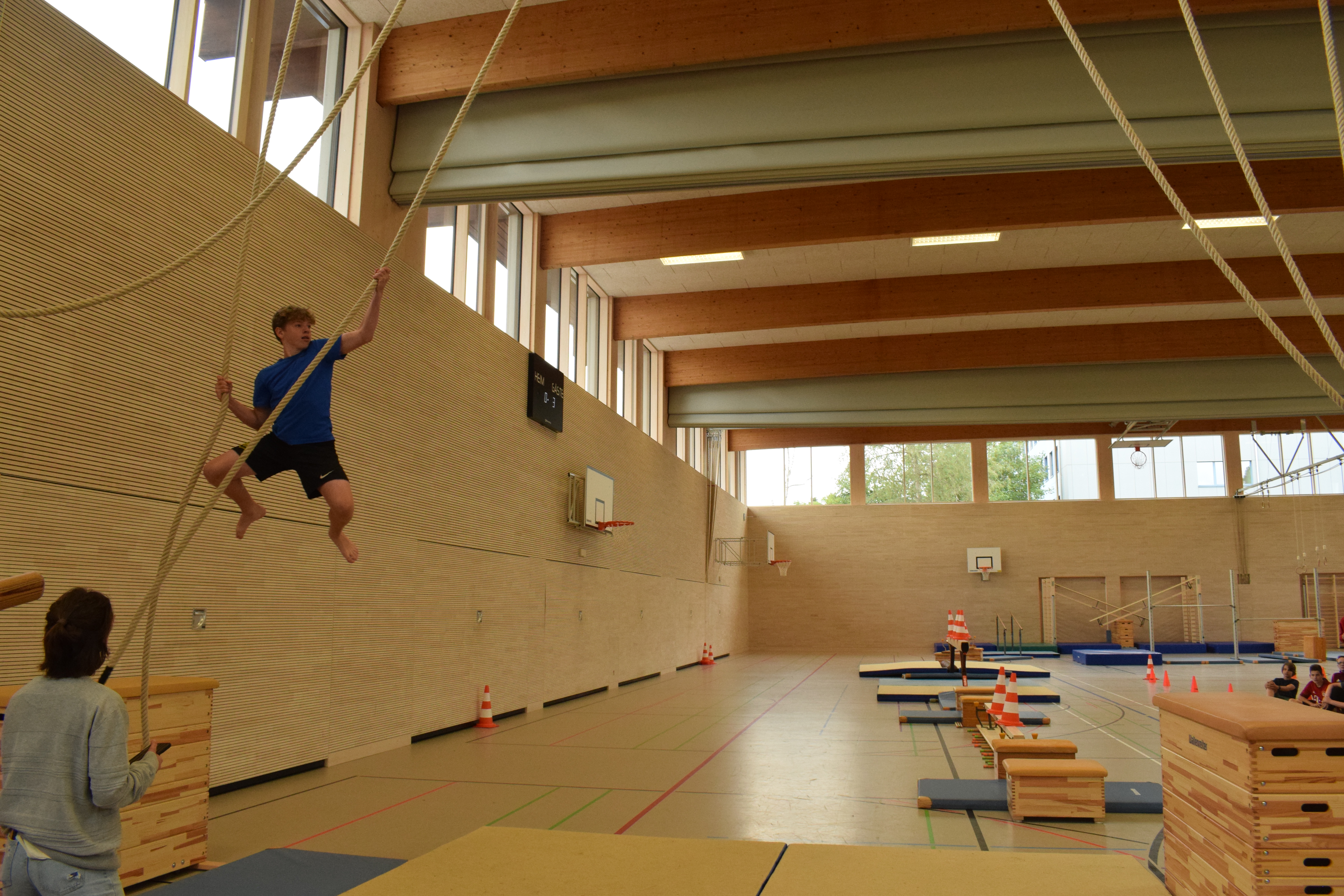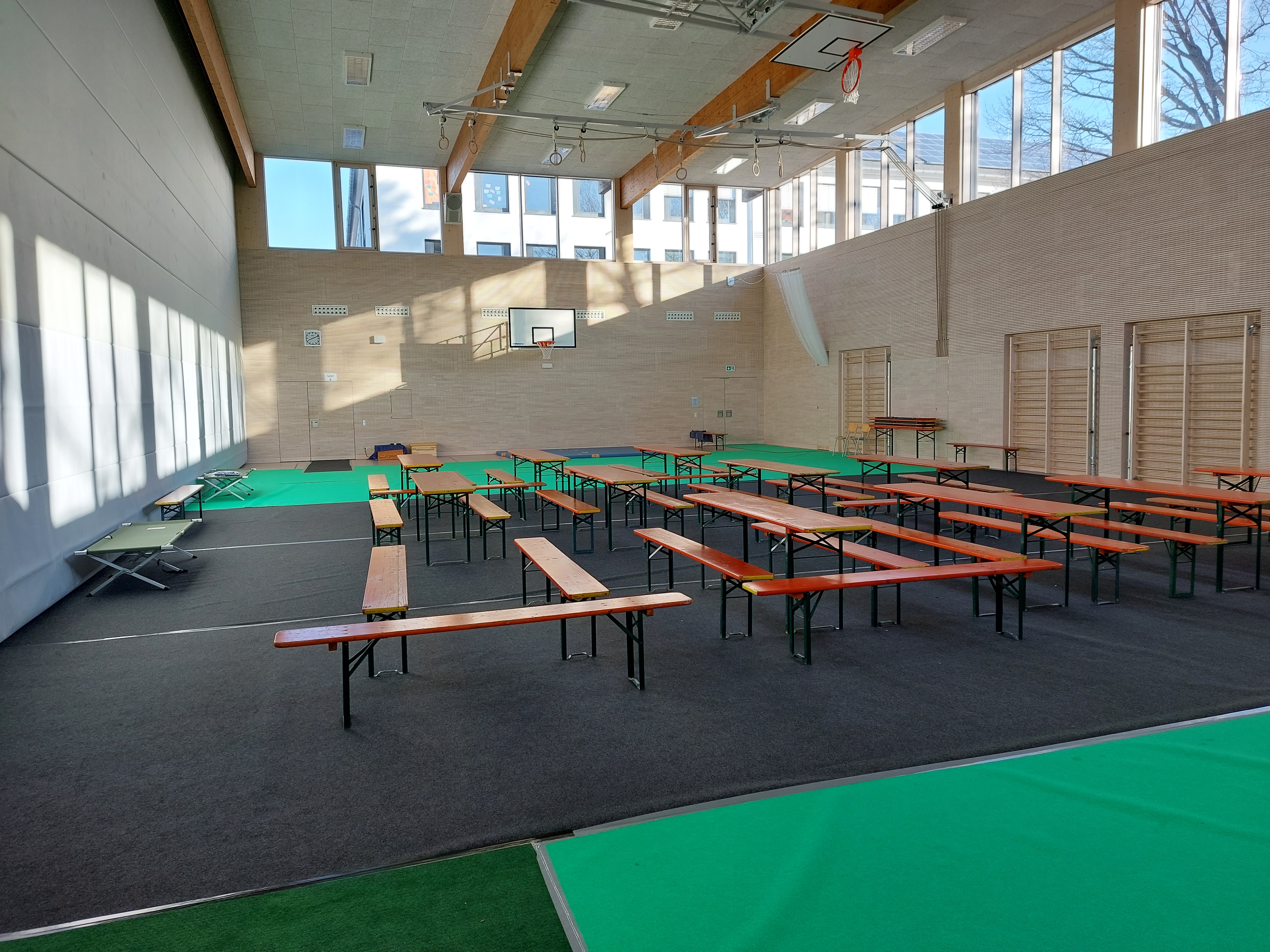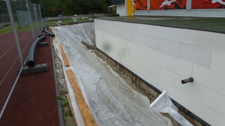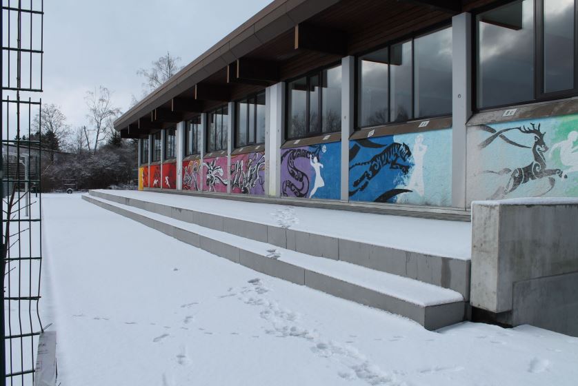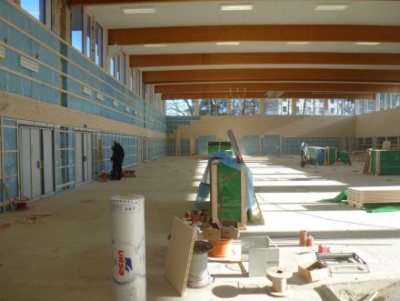 Nach intensiver Planungszeit mit zahlreichen Sitzungen im staatlichen Bauamt Kempten wurde ab März 2018 mit den ersten Arbeiten begonnen. Zu Beginn wurden alle Sportgeräte in den auf dem Pausenhof West aufgestellten Containern eingelagert. Auch der Mehrstationenturm des Kraftraums wurde von der Fachschaft Sport in mühevoller Kleinarbeit zerlegt und eingemottet. Alle Sportgeräte, die während der Bauphase für den "alternativen" Sportunterricht benötigten wurden fanden im Atriumsgebäude des Gymnasiums im Keller U-042 einen Platz. Während der gesamten Bauzeit fand der Sportunterricht, sommers wie winters, überwiegend im Freien statt. Lediglich in einigen wenigen freien Zeitfenstern konnte der Sportunterricht in der Stadionhalle, der MS-Halle oder der Berufsschulhalle stattfinden. Wir danken an dieser Stelle der RS Mod, der MS Mod sowie der Berufschule Mod für die gute Zusammenarbeit!