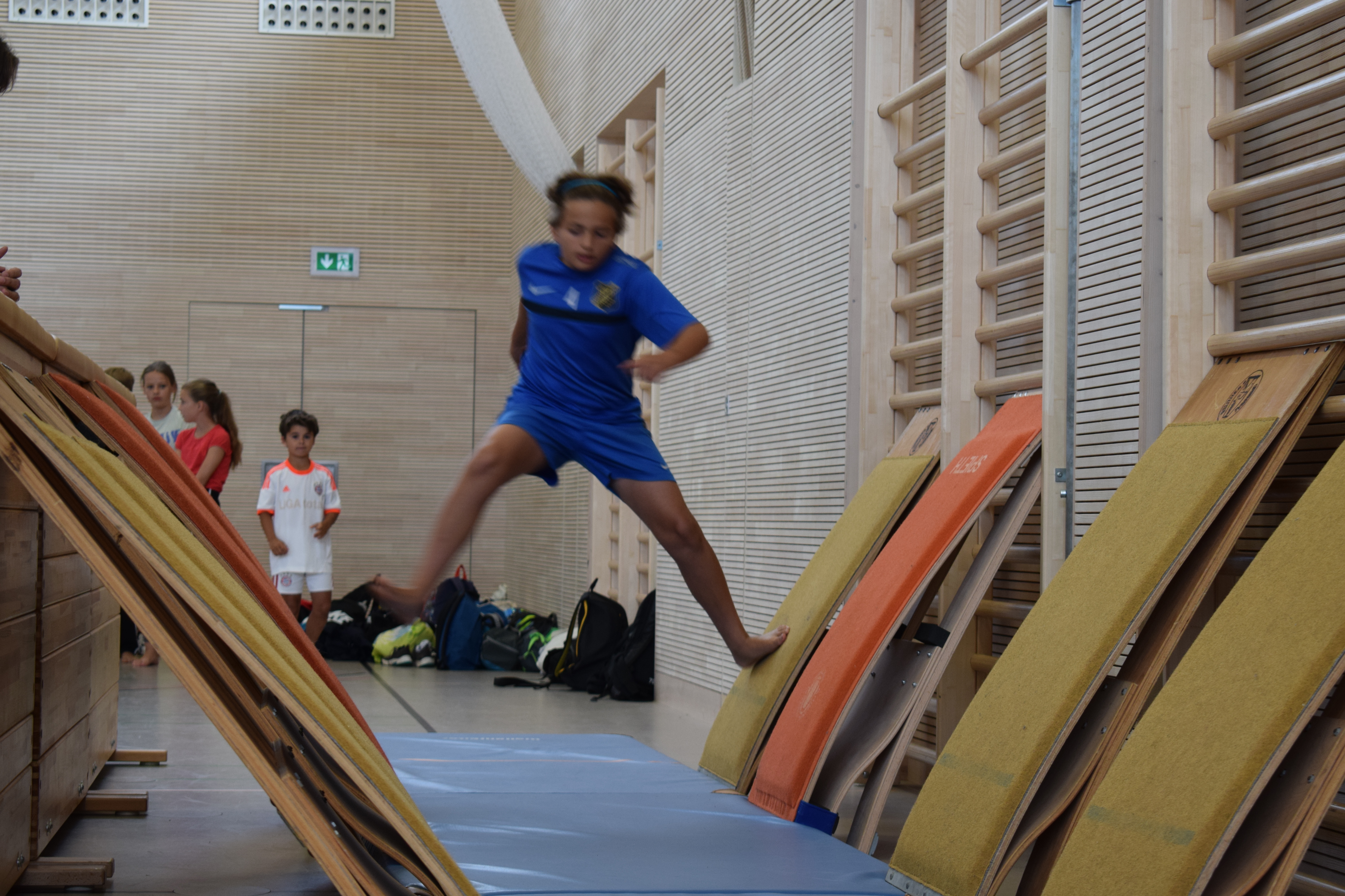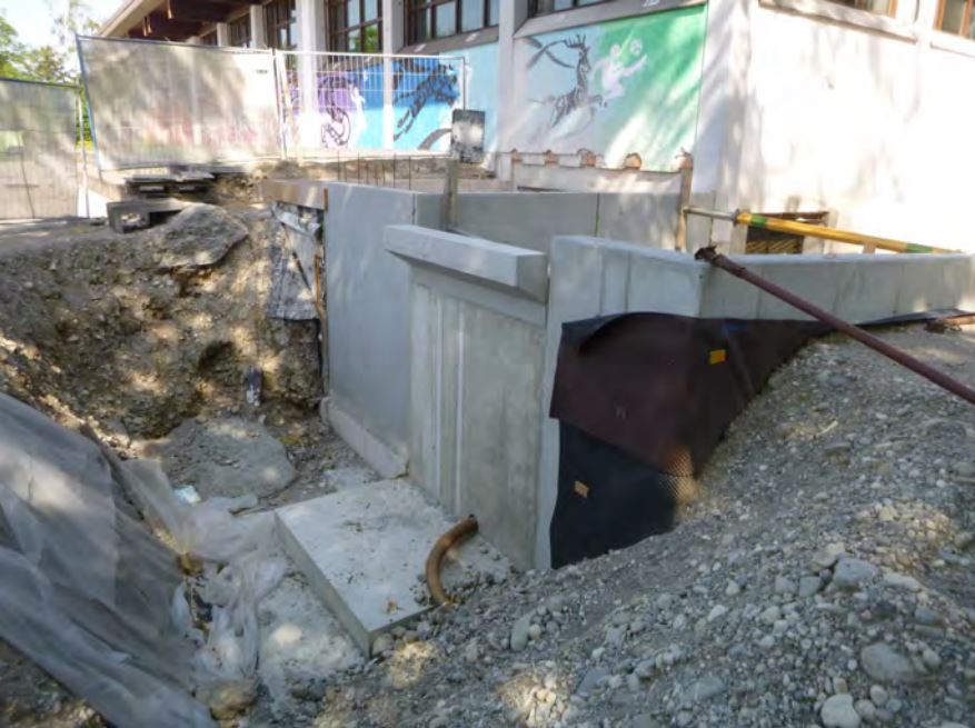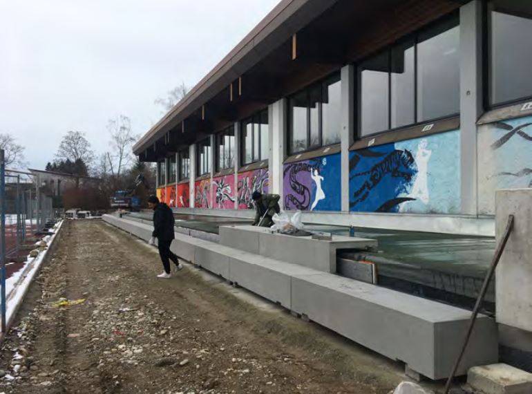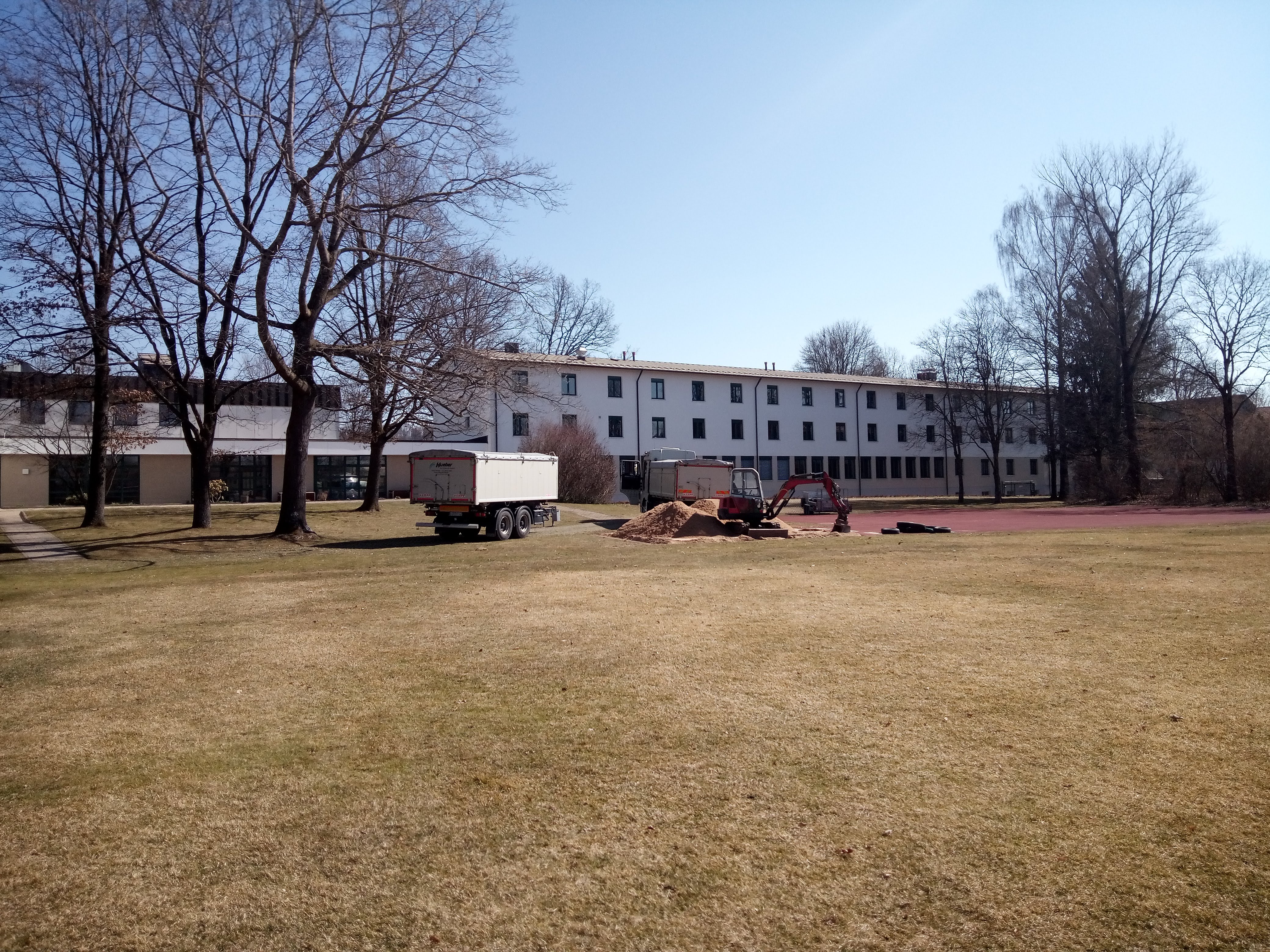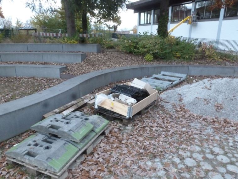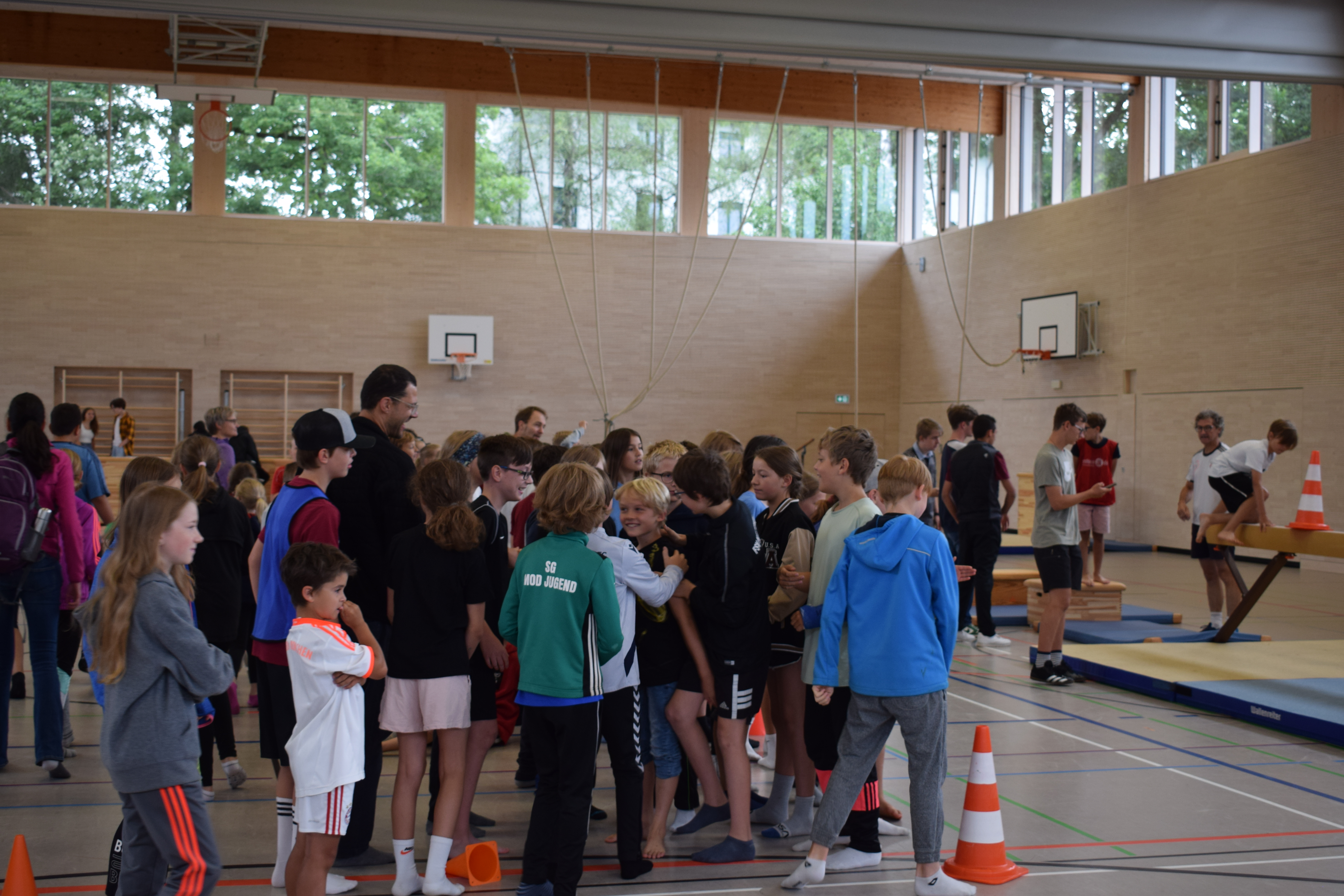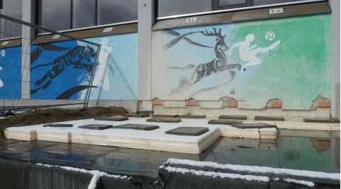 Nach intensiver Planungszeit mit zahlreichen Sitzungen im staatlichen Bauamt Kempten wurde ab März 2018 mit den ersten Arbeiten begonnen. Zu Beginn wurden alle Sportgeräte in den auf dem Pausenhof West aufgestellten Containern eingelagert. Auch der Mehrstationenturm des Kraftraums wurde von der Fachschaft Sport in mühevoller Kleinarbeit zerlegt und eingemottet. Alle Sportgeräte, die während der Bauphase für den "alternativen" Sportunterricht benötigten wurden fanden im Atriumsgebäude des Gymnasiums im Keller U-042 einen Platz. Während der gesamten Bauzeit fand der Sportunterricht, sommers wie winters, überwiegend im Freien statt. Lediglich in einigen wenigen freien Zeitfenstern konnte der Sportunterricht in der Stadionhalle, der MS-Halle oder der Berufsschulhalle stattfinden. Wir danken an dieser Stelle der RS Mod, der MS Mod sowie der Berufschule Mod für die gute Zusammenarbeit!
